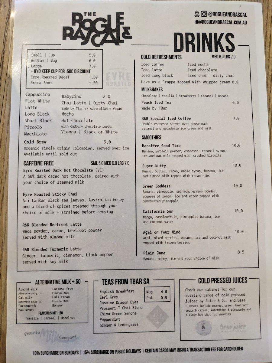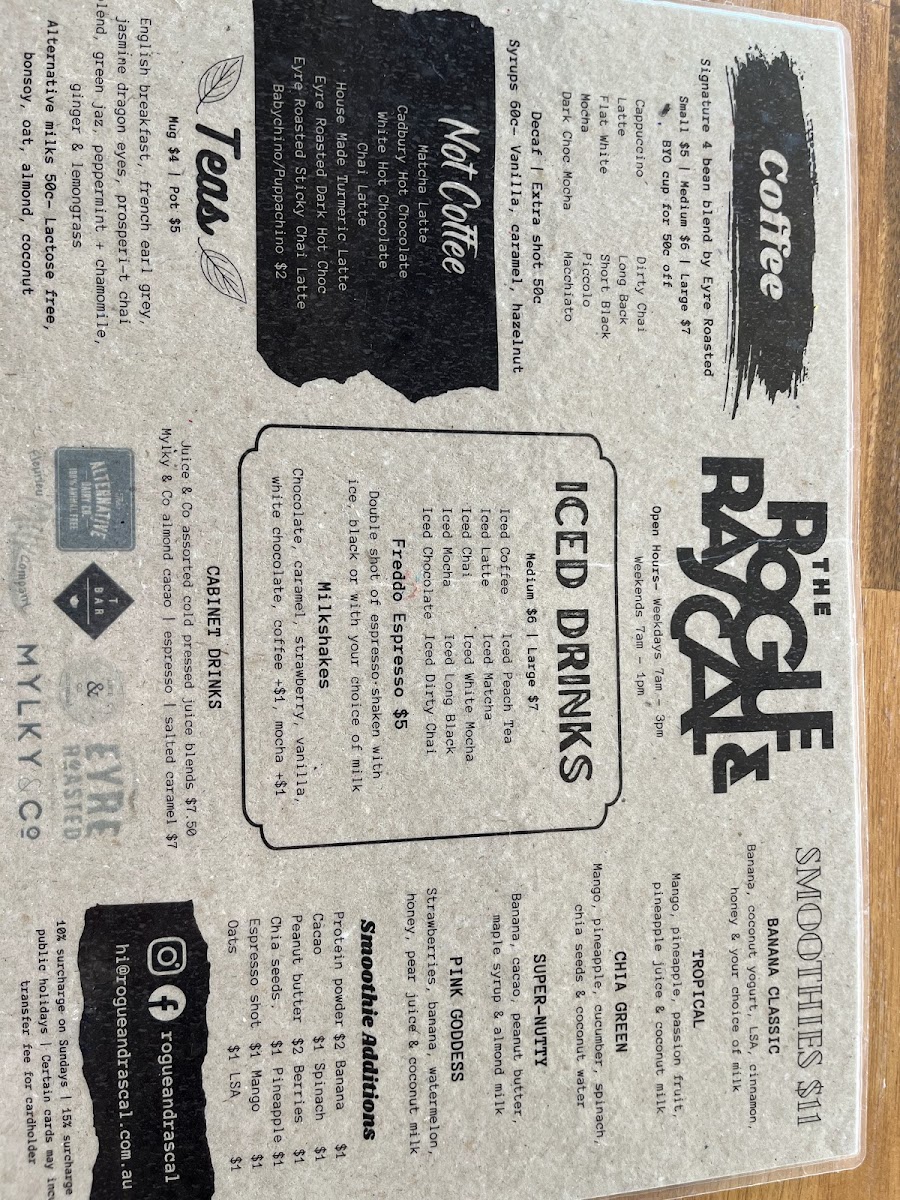 Welcome to The Rogue & Rascal, a gem nestled in Port Lincoln, where culinary delight meets vibrant atmosphere. Located at 64 Tasman Terrace, this cozy cafe has become a favorite among locals and visitors alike. The highlight here is undoubtedly the sensational breakfast offerings; guests rave about the exquisite eggs Benedict and fluffy Japanese pancakes that promise to start your day on a high note.